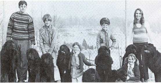 While driving through the Maine Countryside, Joan and Roger Foster found themselves behind a station wagon with a huge black tail hanging out of the window. Intrigued they followed the car into a driveway and watched as five children streamed out followed by an enormous black Newfoundland. The dog lumbered over to their car and stuck his head in their window. It was love!